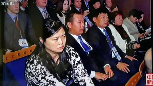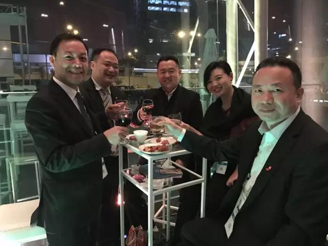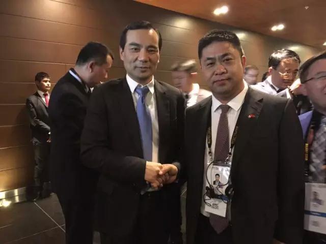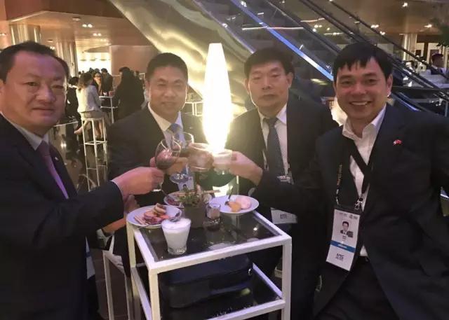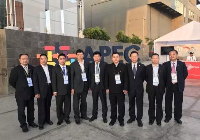 中企思會員單位新華聯集團董事局主席兼總裁傅軍(左二)、常務理事張志國(左三)、常務副理事長石建超(左四)在APEC現場