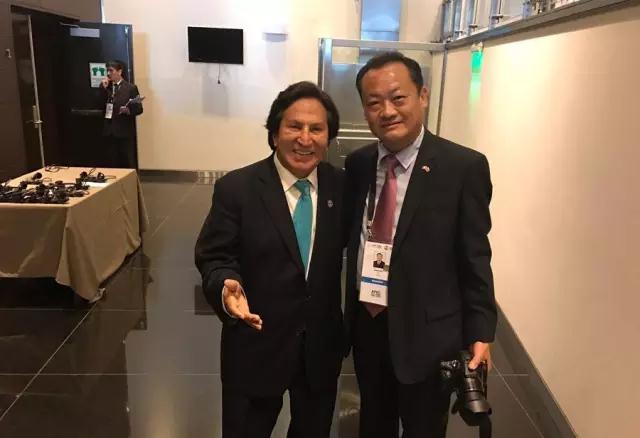 中企思主席團候補主席、山東百脈泉酒業有限公司董事長李成新與秘魯前總統親切交流